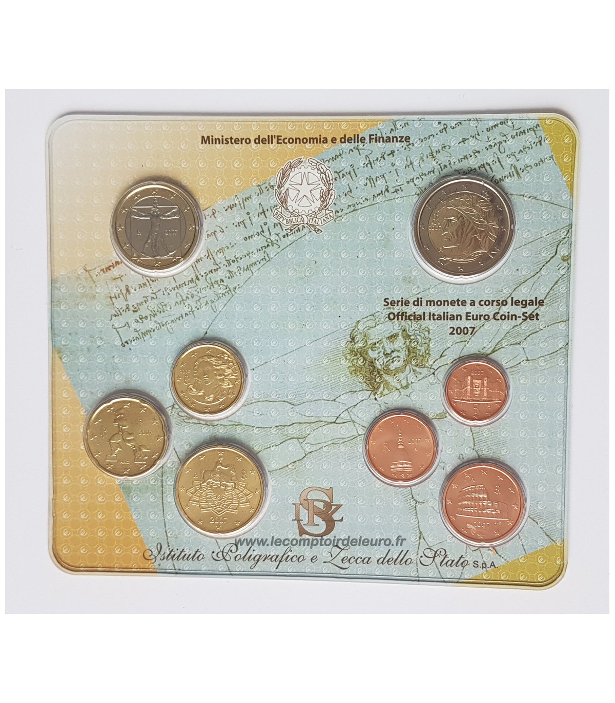 Conjunto de 8 moedas de 1 cêntimo a 2 euros da Itália de 2007.