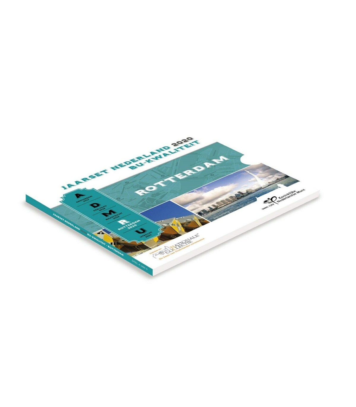 Caixa universal brilhante contendo as 8 moedas dos Países Baixos do ano 2020 da série "cidades dos Países Baixos".
