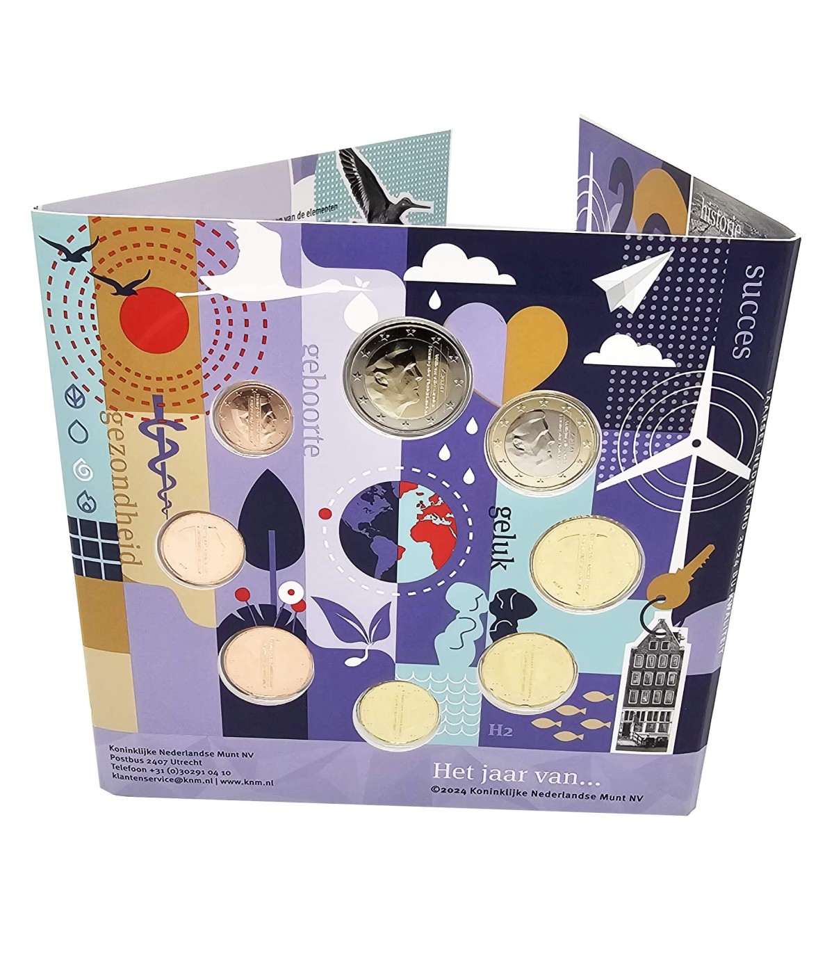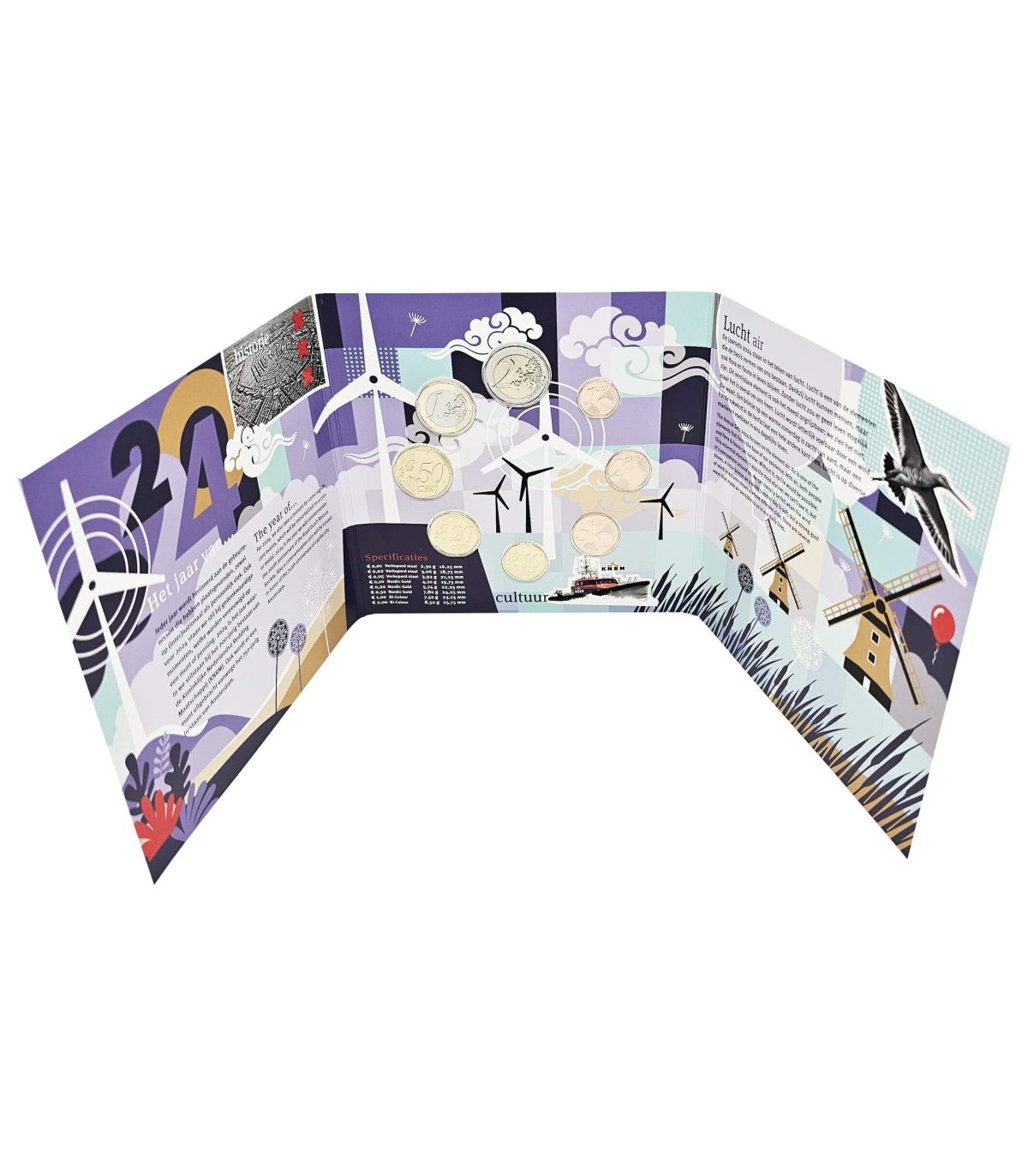 Primeira caixa "Terra" da nova série plurianual "Os Elementos", em BU de brilho universal, com as 8 moedas dos Países Baixos da coleção de 2024